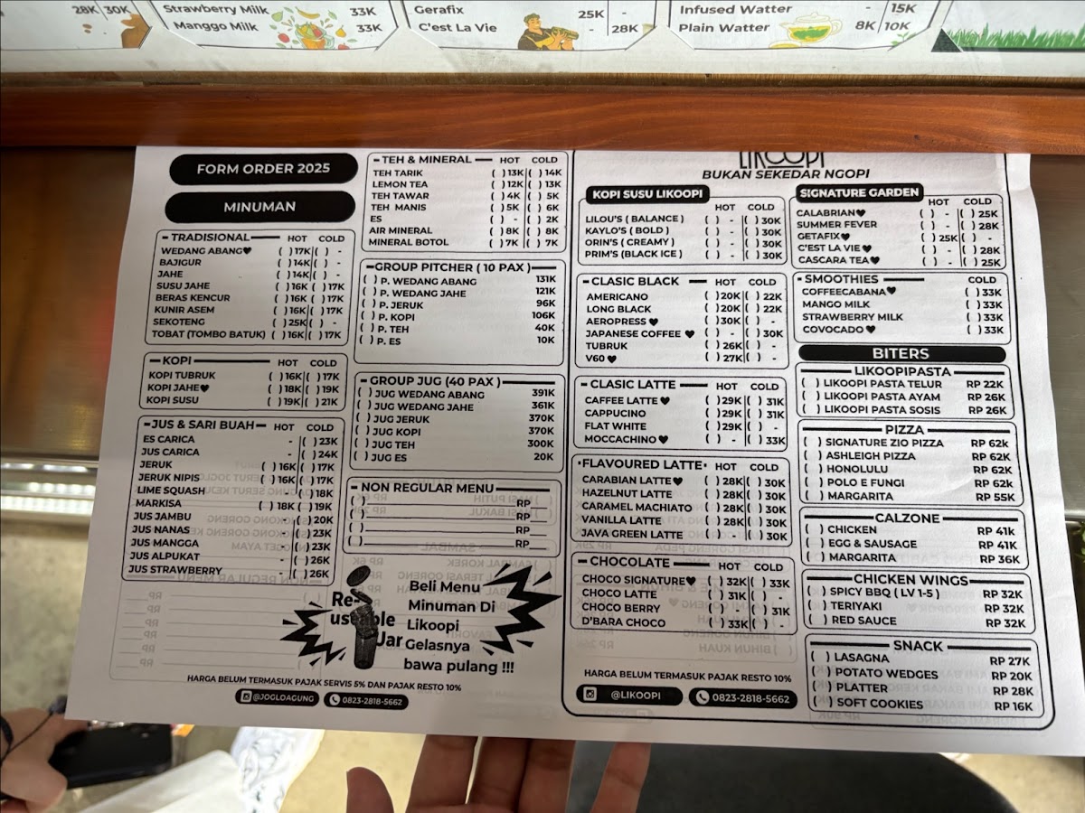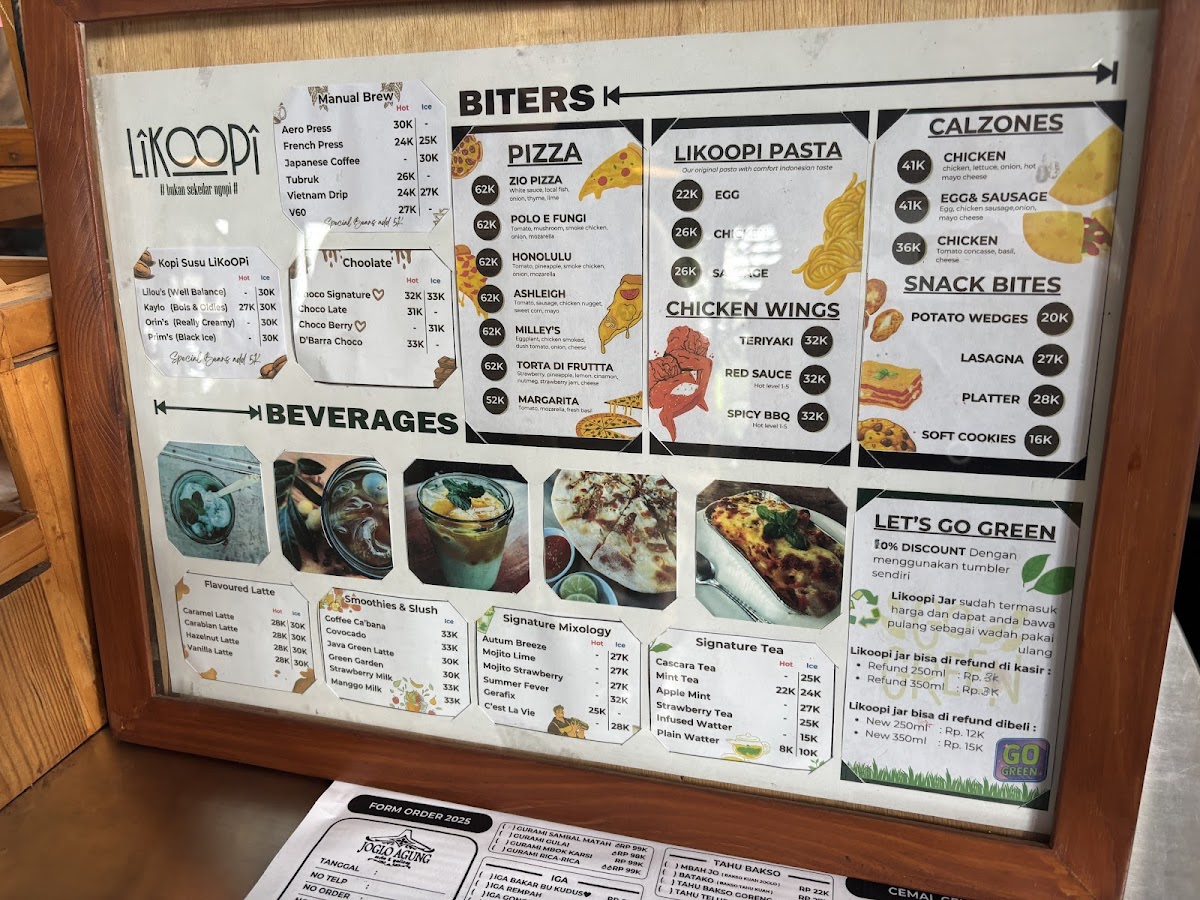 Welcome to Likoopi, a charming café nestled in Munding, Bergas, Semarang Regency. This delightful spot embraces a sustainable ethos, serving its exquisite menu in eco-friendly glass cups. The atmosphere is inviting, making it perfect for a relaxing evening. Guests rave about the unique pizzas, featuring a fluffy yet crispy crust that balances flavorful toppings, including local fish and mushrooms. These culinary creations deliver a crunchy bite that exceeds expectations. Coffee connoisseurs will appreciate Likoopi's selection, boasting specialty brews like Japanese Coffee made from premium beans that promise a rich experience without bitterness.